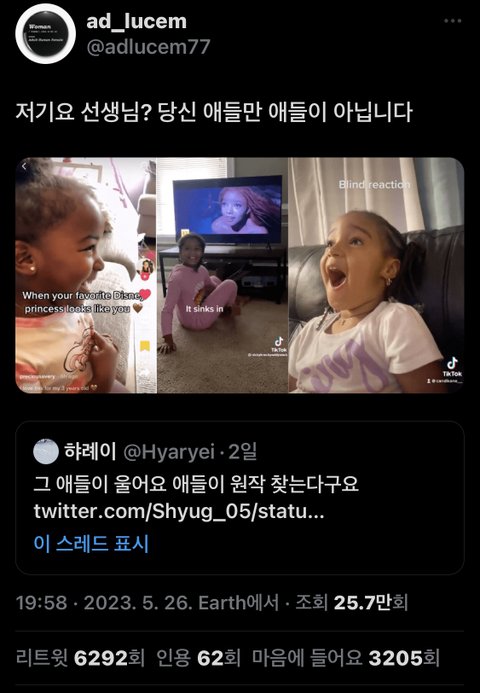 같은 황인종 한국 애들이 우는 건 알빠 아니고 흑인 애들이 좋아한다면 ㅇㅋ라는게.. 글고 만약 인어공주가 동양인 배우였다면 쟤들도 ㅈㄴ울었을듯
