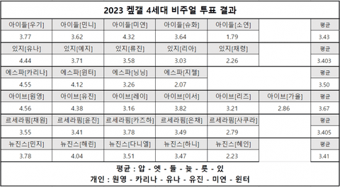 있지 에스파 아이브 아이들 뉴진스 르세라핌