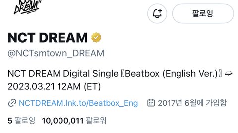 엔시티드림 트위터 공식계정 천만 돌파