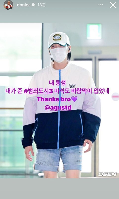 슈가가 마동석이 준 점퍼 입고 출국함
