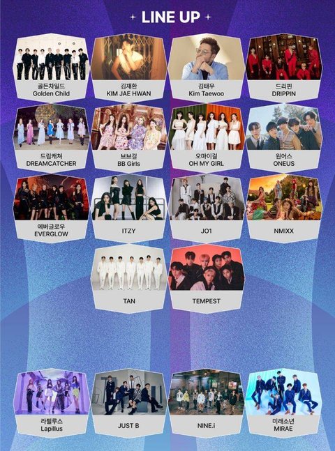 방탄, 에스파, 아이브, 뉴진스, 아이들, 르세라핌, 스키즈, 엔믹스, 스테이씨, 스키즈, 엔시티, 세븐틴, 엔하이픈, 투바투