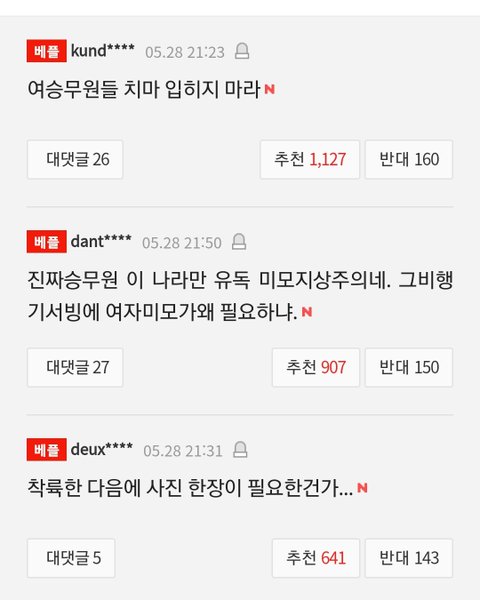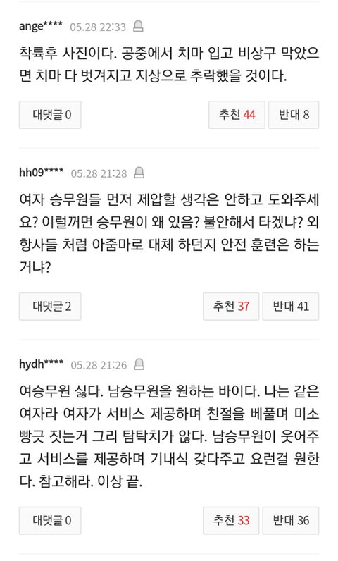 승무원이 잘한 일에 칭찬은 못해줄 망정 갑분 외모지상주의 타령에 착륙후 사진 한장 필요하냐며 승무원 업적 깎아내리는 댓글 한남들 역겨움
