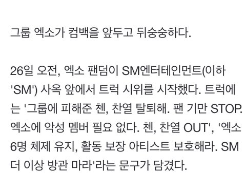 뒤숭숭한 이유=첸찬열 지분 95퍼╋얘네 안 내보내고 일 이상하게 하는 스엠 5퍼