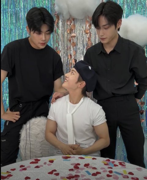 양옆에 냉장고만한 건장한 남자들이랑 해맑은 매튜♡(근데 팔뚝이 화나있음)