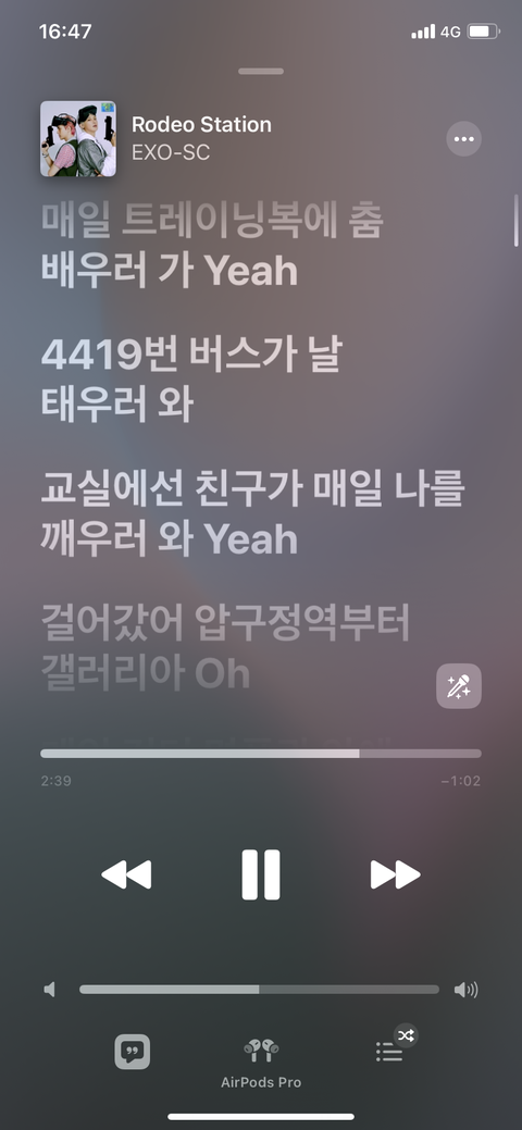 ㅅㅂ 나 압구정역 앞에 사는데 4419번 버스 없어져서 더 추억임….. 어쩌다 듣고 매일 듣고있음 ㄹㅇ타이틀곡도 안 들어봤는데 이거 넘 조아서맨날들움… 그리고노래다듣고나면좀슬품…