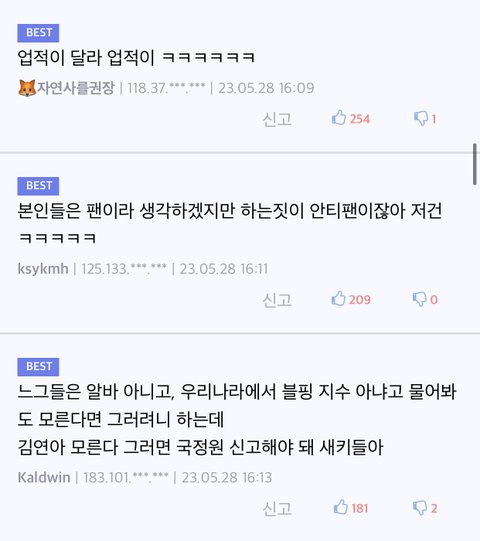 현실반응이라면서 가져오는게 남초 ╋ 더쿠... ㅋㅋ 심지어 더쿠는 걍 블핑 안티사이트인데 저딴걸 현실 반응이랍시고 가져오네 진짜 현실은 애초에 외퀴 몇명으로 일어난 이 일에 아무런 관심이 없어요~