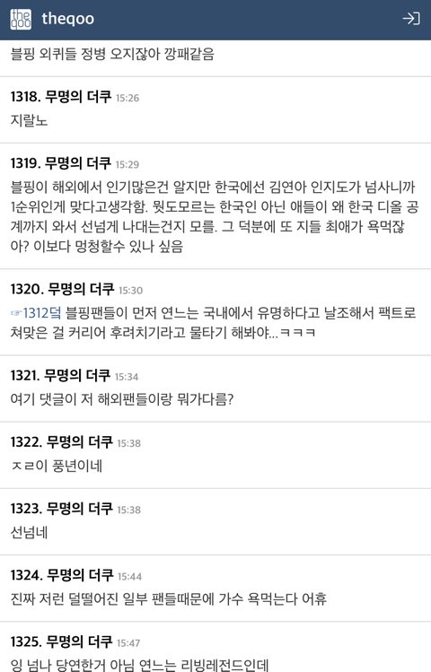 셋 다 현실에서 동떨어진 사이트인걸? ㅋㅋㅋㅋㅋ 특히나 더쿠는 블핑 안티 사이트임