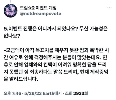 뭔가 총대님 사비로 먼저 진행하는걸수도 있고 업체랑 합의해서 제작 먼저 하는걸수도 있고..암튼 그래도 모금액 채우는건 중요해ㅠㅠㅠㅠ진짜 여기 딴지거는 애들 다 입 좀 닥쳤으면 좋겠다 드림쇼도 오지말고ㅋㅌ입만 살아가지고 진짜 짜증나ㅋㅋㅋㅋ총대님 멘탈 쎈거같아서 너무 다행이야...ㅜㅜ다들 모금 많이 하자..ㅠㅠ소액이라도 많은 인원모이면 가능해