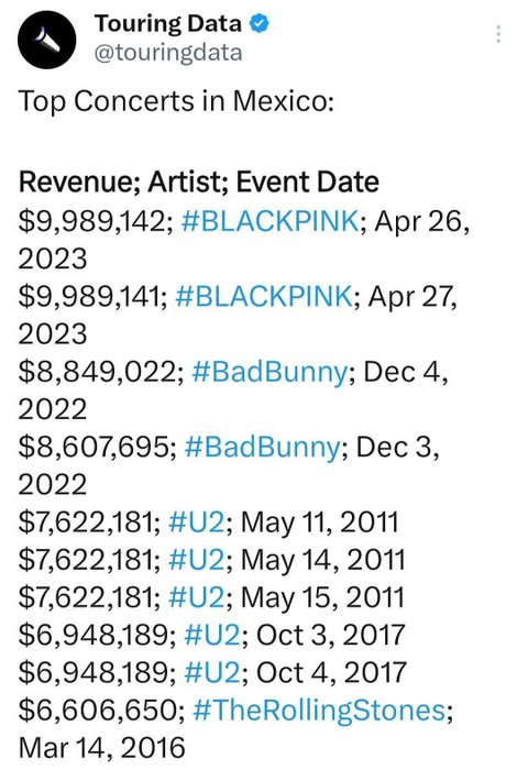 그리고 배드버니 기록을 깨고 멕시코에서 열린 콘서트 중 역사상 최다 수익을 올린 콘서트가 됐음..