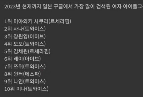 이게 어제 나온 순위이고 카리나는 10위안에도 없는데 검색순위가 에스파에서 젤 높다고?