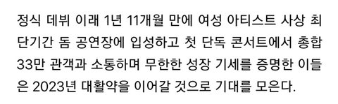2022년 첫 투어 잘 끝냈고 올해 3월 싱글 발표함