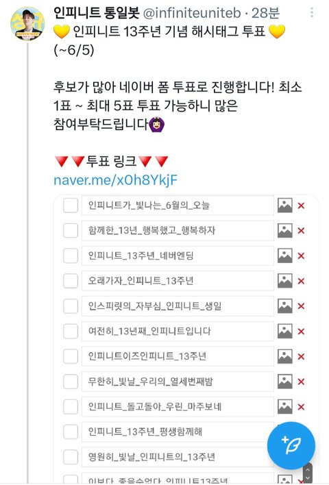 인피니트 13주년 해시태그 투표ㄱㄱ