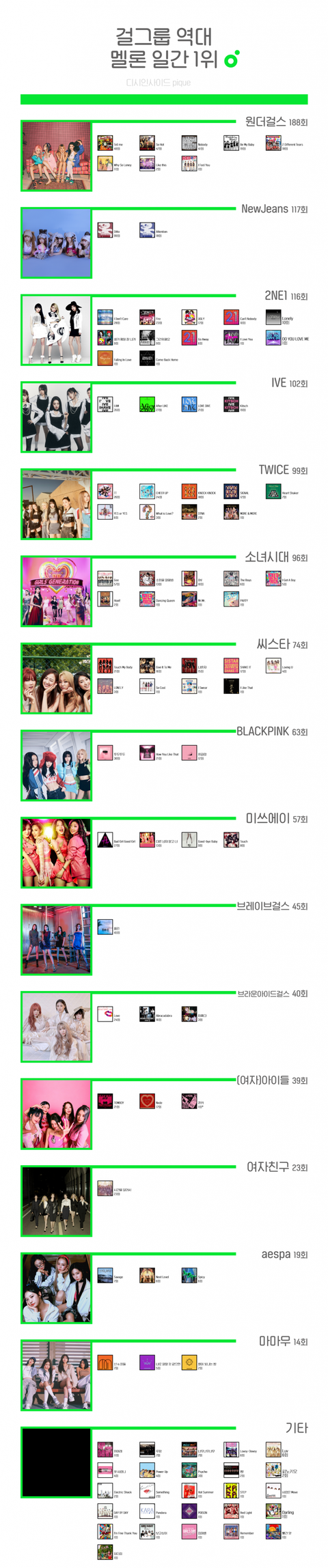 걸그룹 역대 멜론 일간 1위