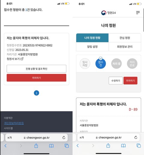 1. 국민청원은 왜 하지 않는가? 이 부분 답변드리겠습니다. 국민청원 올렸습니다. 다만 청원 후 공개청원으로 바뀌는데에는 상당 시간이 소요됩니다. 접수는 5월 31일에 했습니다 1. 1년전 사건을 왜 이제서야 가져오냐고 하시는데, 보통 형사사건의 처리 평균 기간은 최소 1년입니다. (앞서 말씀드린 대로 보복범죄의 위험이 있을까봐 끝까지 공론화하지 않으려고 하다가 아무리 무서워도 피해자가 숨는 건 좀 아닌 것 같아 재판기일이 얼마 남지 않은 이 시점에 이렇게 급하게 글을 올리게 된 것입니다.)