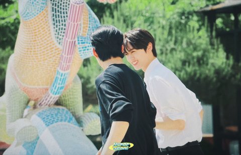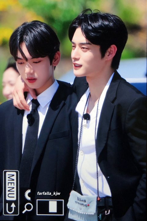 27도에 올블랙 정장 풀세트 입혔는데도 좋다고 자기들끼리 붙어있음❤️