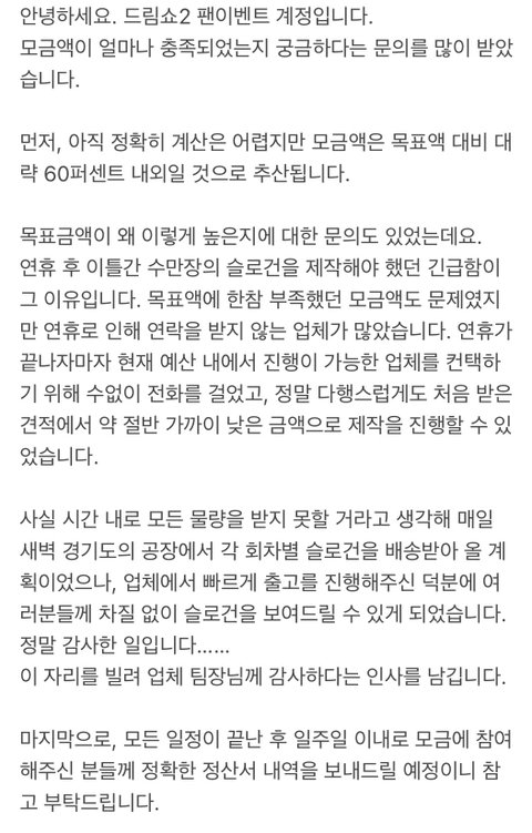 컨텍할거 개~많고 팬들 의견모아 투표하랴 업체랑 가격 , 일정 조율하랴 .. 총대매는게 쉬운일이 아니라서 안좋은소리도 많이 들으셨는데 진짜 찐 애정만으로 가능한거
