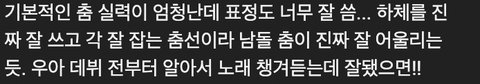 춤선도 좋고 강약 조절이랑 표정 진짜 좋았음