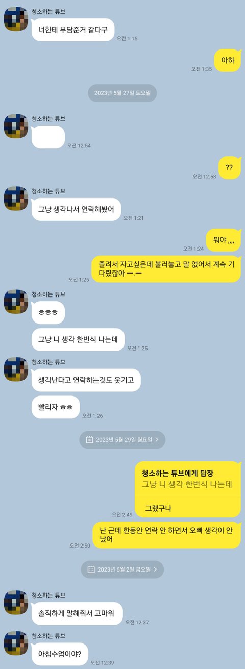 내가 부담스럽다고 얘기했거든 그러고 연락이 끊켰음