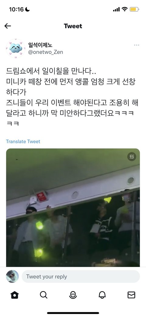 반대로 127콘와서 응원온 드림보고 칠프가 조용히하랬으면
