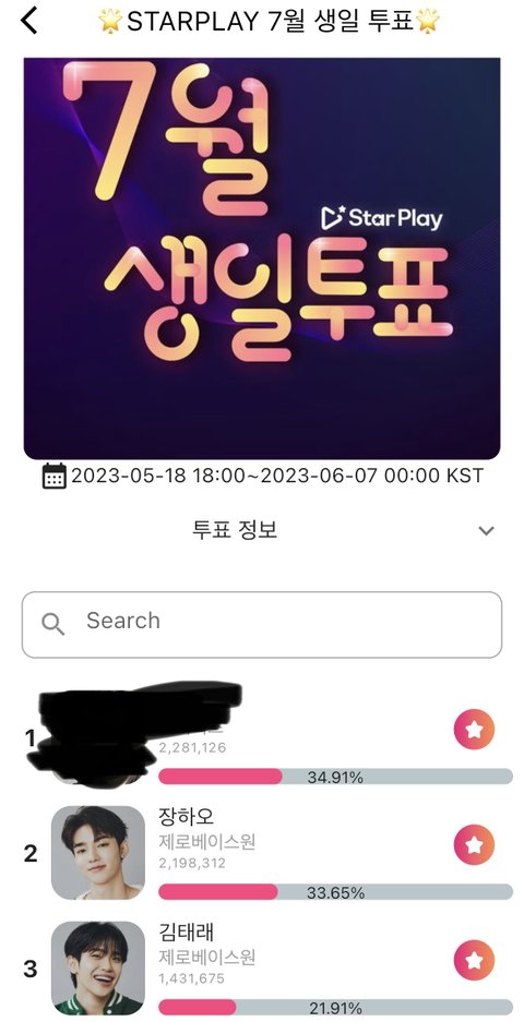 스타플레이 깔아서 매일 투표 부탁해~ 6/7까지 매일매일!!!!!