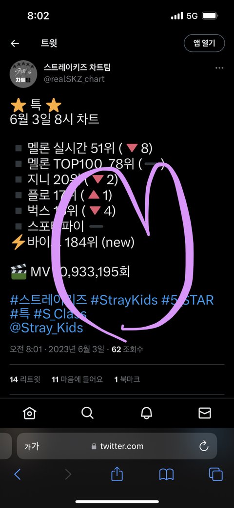 뮤비추이 좋은 듯!! 뮤비도 스밍 아자