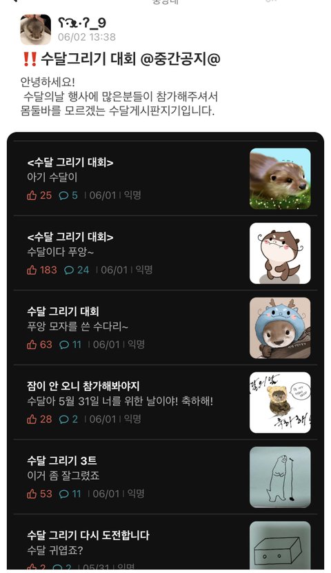 기말 곧인데 수달 그리기 대회 중 ㅋㅋㅋㅋ