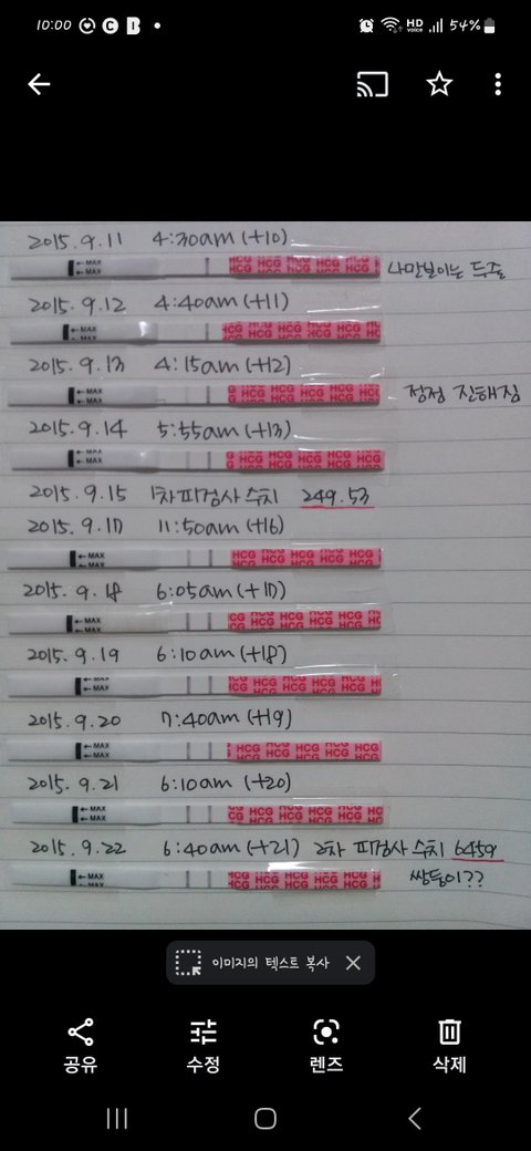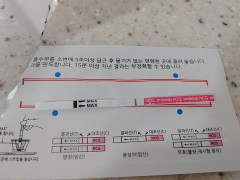 저 임신했을때 테스트 한 사진이에요 내일 테스트 하시면 더 진하게 두줄 나올거에요!