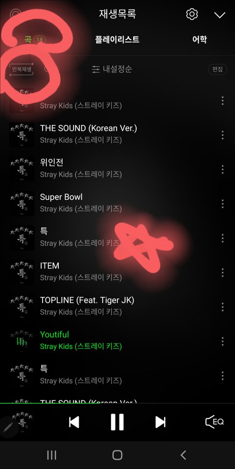 반복재생 (왼 상단) 꺼야해