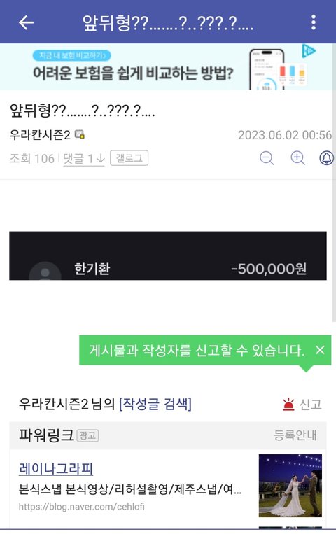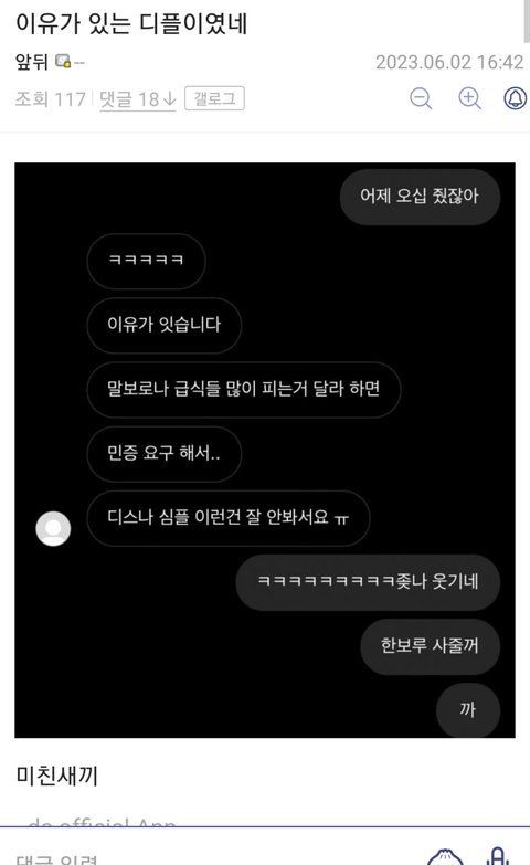 결국 새벽5시쯤 자기는 동탄으로 돌아간다는 글을 마지막으로 앞뒤는 사라지게됩니다.