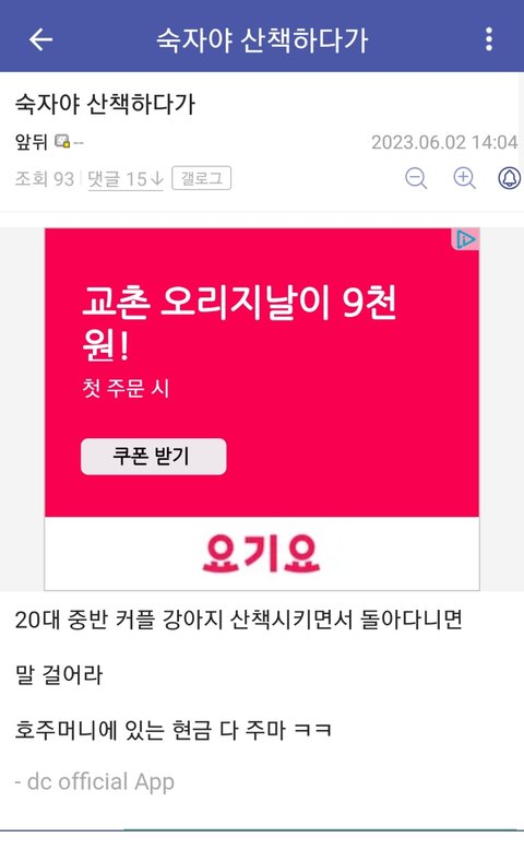 자기 여친대신 대갤에서 알게된 미성년자 만나러 가느라 못본다고