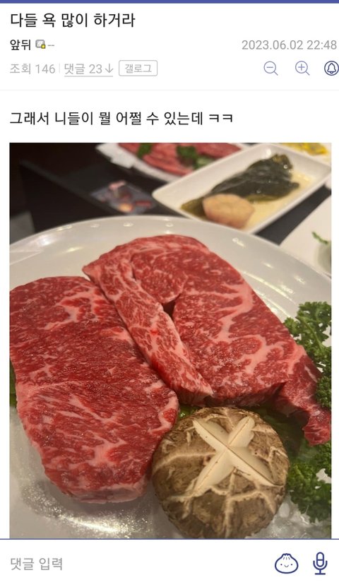 대충 8시정도에 대전의 어느 소고기집에 들어가 단둘이 24만원어치를 먹었다고함.