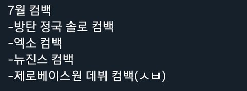 저 라인업에 ㅇㅅㅌ랑 ㅅㅇㄴ 등 팬덤 큰 그룹들 ㅈㄴ 많이 컴백함 특히 슴 그룹들 ㅈㄴ 많음 ㅅㅂ; 단체곡도 정국이 솔로도 저쪽한테 밀리는 꼴 절대 못 본다 진짜 홧팅하자