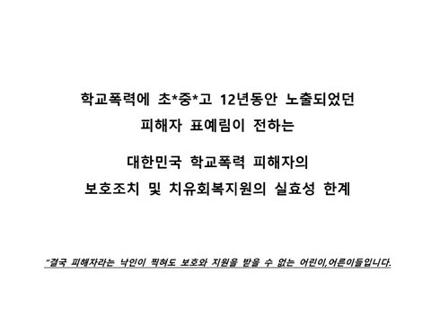 안녕하세요 학교폭력 피해자였던 표예림이라고 합니다
