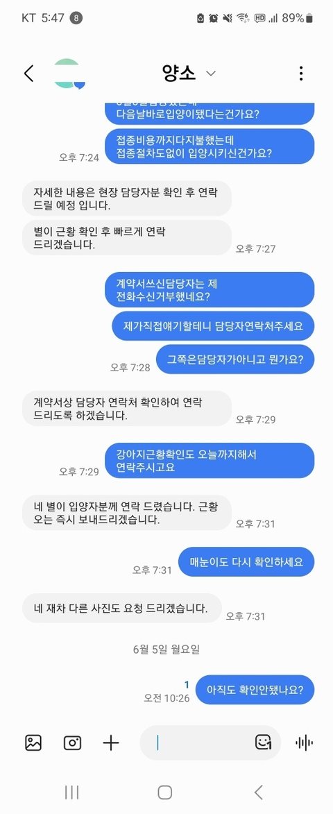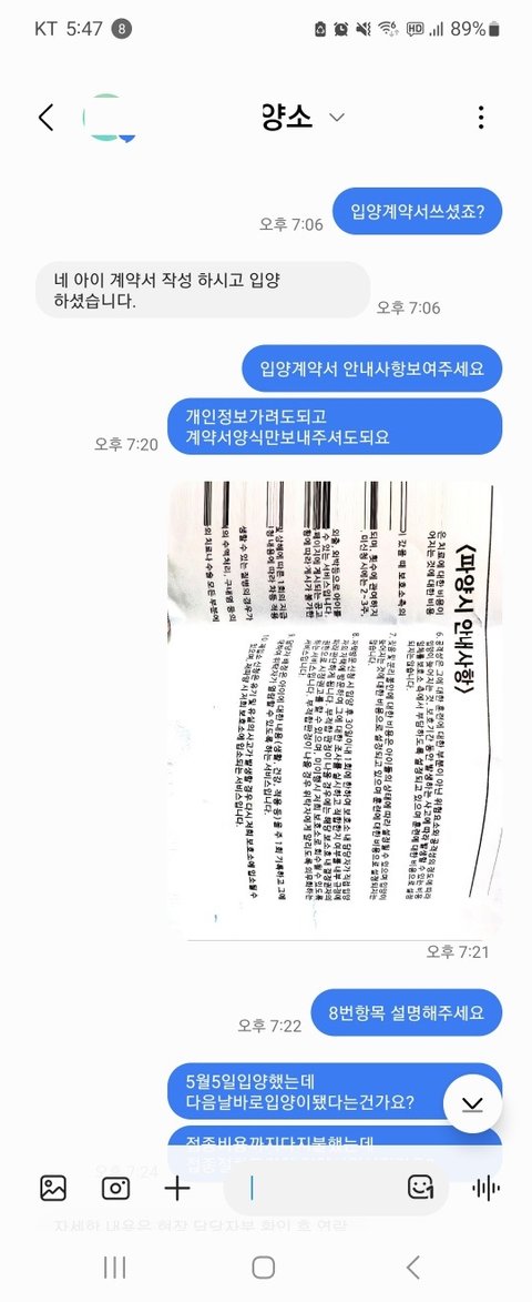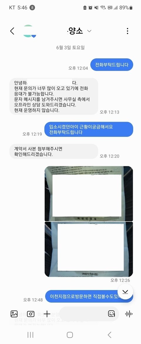 계약서를 찍어보내고 근황을 알려달라하니 확인 후 연락주겠다라는말만 반복...