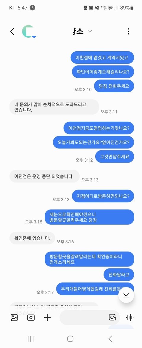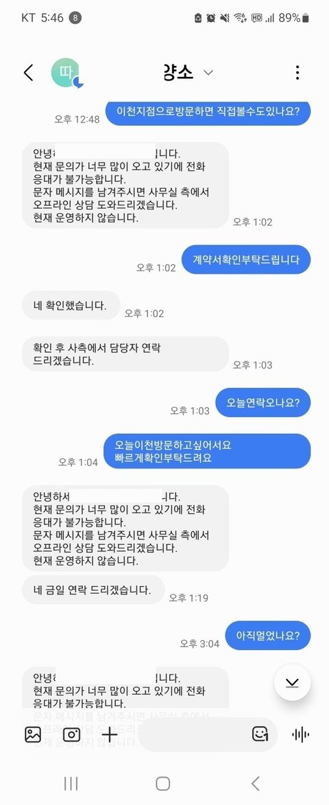 계약서를 썻던 담당자는 저를 차단하였습니다.