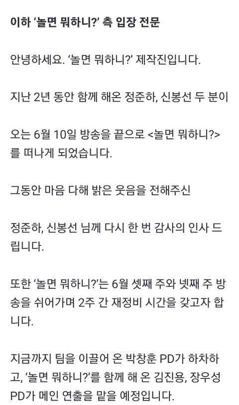 놀면 뭐하니 신봉선,정준하만 하차 ㅋㅋㅋ