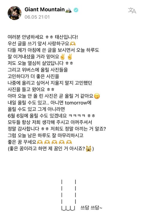 보넥도 태산 위버스 글 너무 귀여워