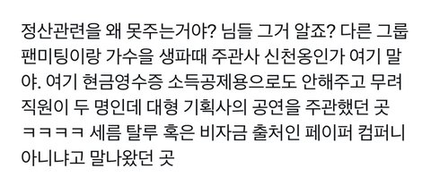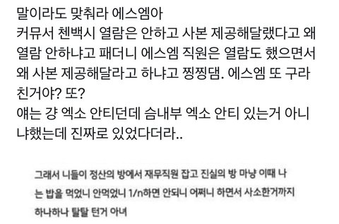 지금 욕하는 글이나 댓글들 다 추측임ㅋ 스엠블라라면서 에스엠 입장문이랑 말 하나도 안 맞는 익명 글 가져오고ㅋㅋ 거짓말 칠 거면 제발 전문 좀 읽고 오세요^^ 그걸 쓰는 사람이냐 믿고 퍼나르는 사람이나.. 니네가 이딴 글로 욕하고 선동한게 없었던 일이 됨? 뭘 다른 걸 걸고 넘어질려해 ㅋㅋ