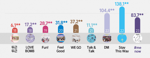 아이브, 에스파, 아이들, 스테이씨, 엔믹스, 트와이스, 있지, 스키즈, 더보이즈, 엔시티, 엔드림