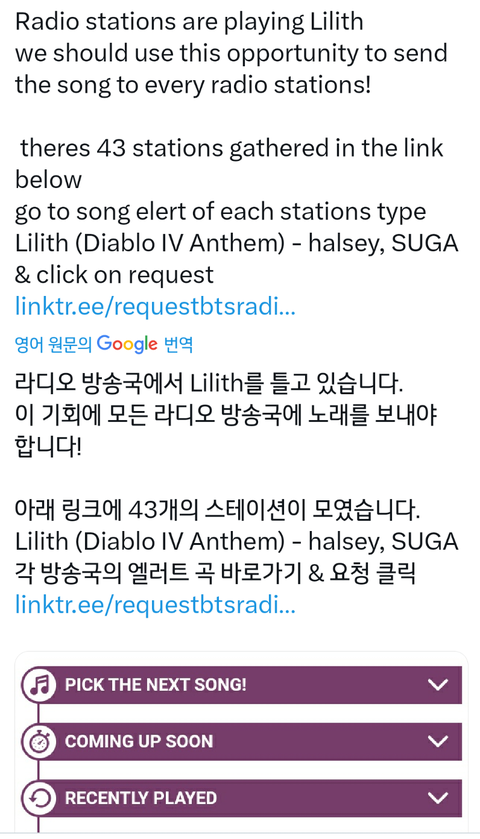 아래 곡 복붙해서 요청하면 됨