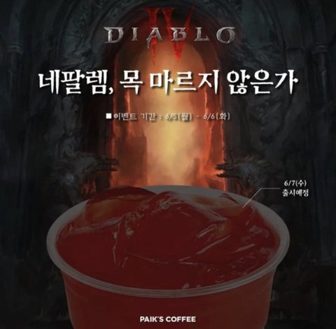 빽다방에 디아블로음료 나온대ㅋㅋ