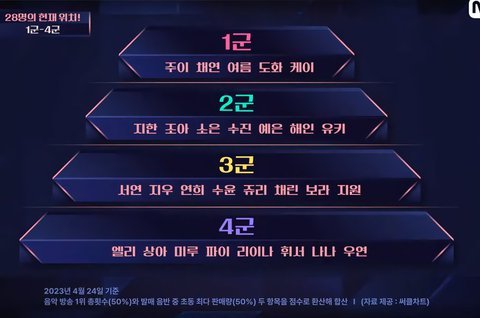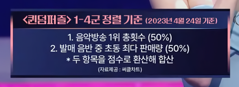 음방순위+초동판매량 기준으로 출연자들 1군부터 4군까지 급 나눴다는 엠넷 퀸덤퍼즐