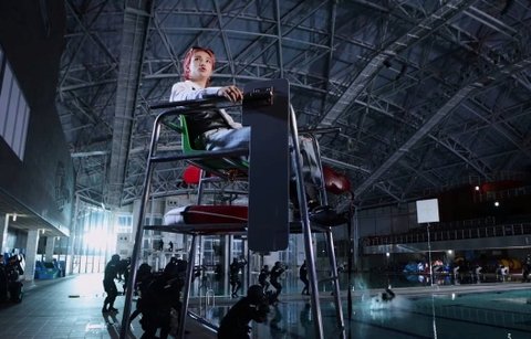 수영장에서 물에도 한번 빠져주고