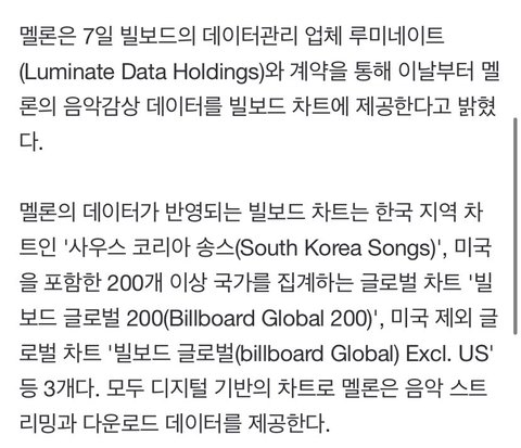 멜론 차트 빌보드에 반영된다네 오히려 좋아???