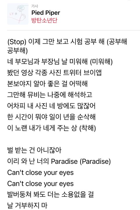 그만보고 시험공부하래ㅋㅋㅋ 방탄팬은 아니지만 가사 왜케 솔직하고 공감되냐ㅋㅋㅋ