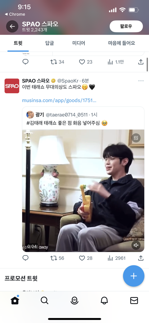 어엉..? 스파오 공계에서 태래 올려줌
