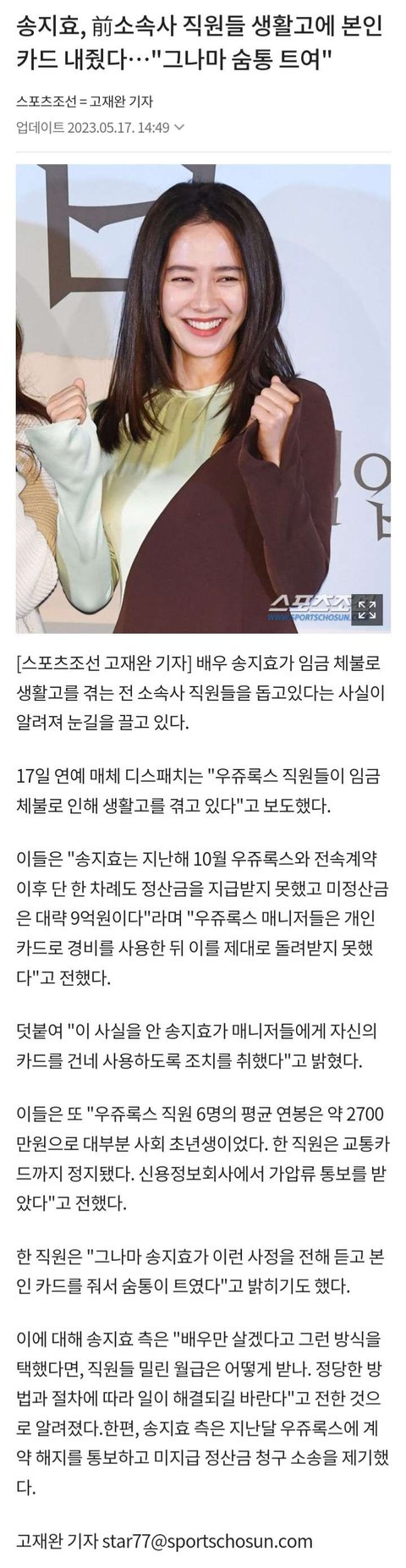 직원이 급 수술 해야할 때도 송지효가 수술비 내주고 거의 매일 가서 말동무 해줬다고 함.. 진짜 착한듯