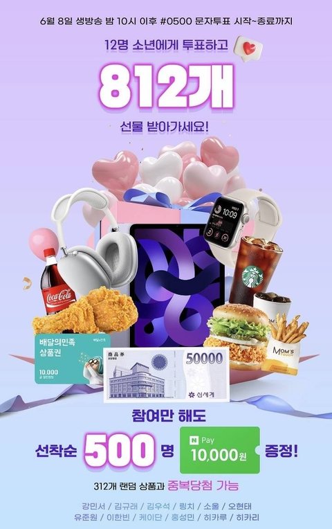 오늘 6월 8일 목요일 밤 10시 소년판타지 파이널 12명의 소년 투표하고