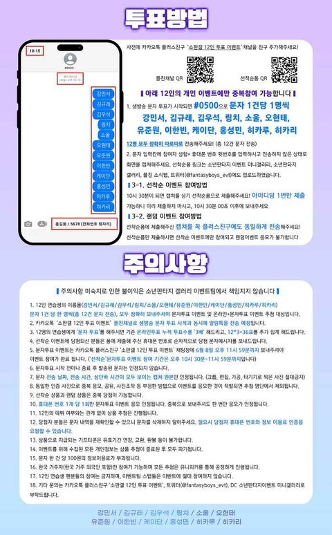 문자 한 번당 1명 총 12개 보내면 돼 소판은 파이널까지 12픽이라서 그럼...
