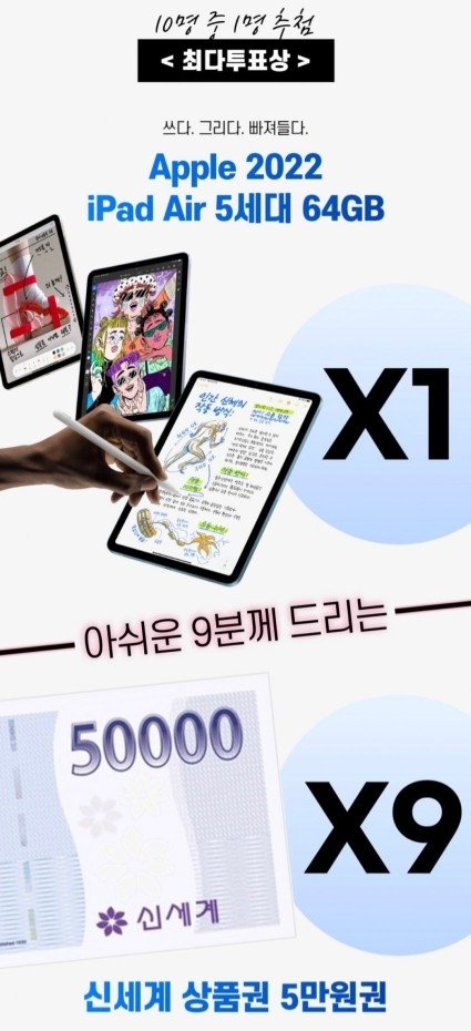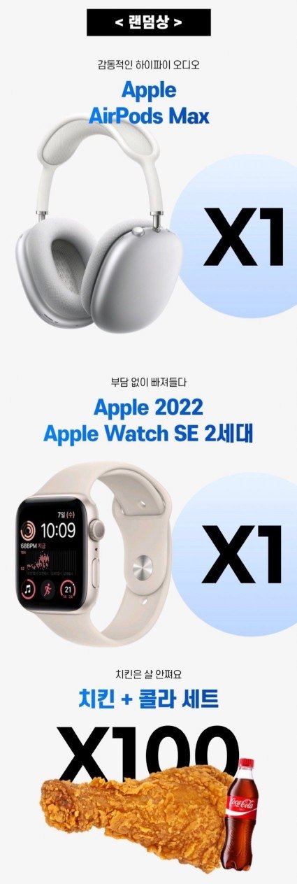 아이패드 에어 5세대, 에어팟 맥스, 애플워치, 신세계 상품권, 치킨 등 총 812개 선물 받아가!
